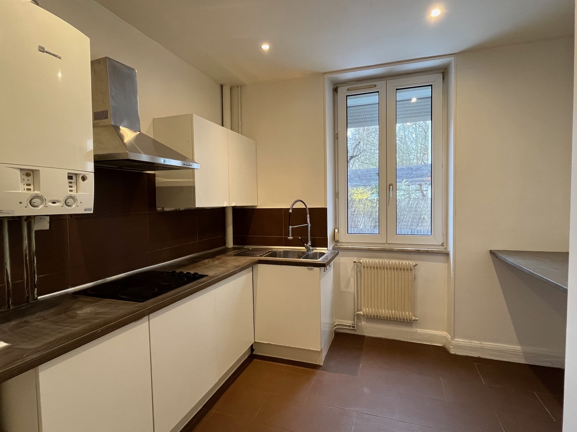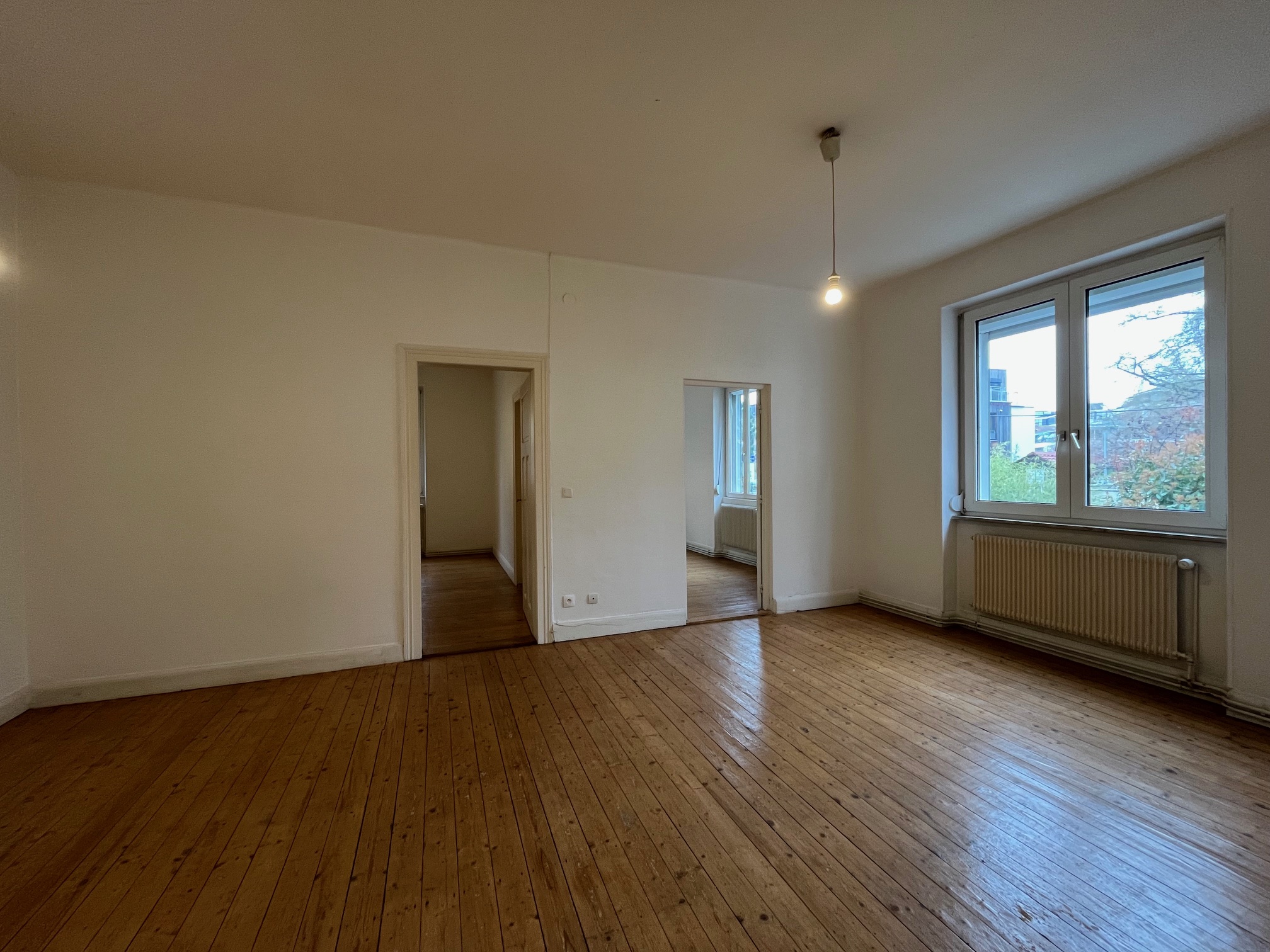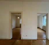 Dans un petit immeuble du quartier du Schluthfeld, proche de l'arrêt de tram, au rez-de-chaussée surélevé, un appartement 3 pièces de 64m2, qui se compose d'une pièce de vie, deux chambres, une cuisine aménagée et partiellement équipée, une salle de bain wc.